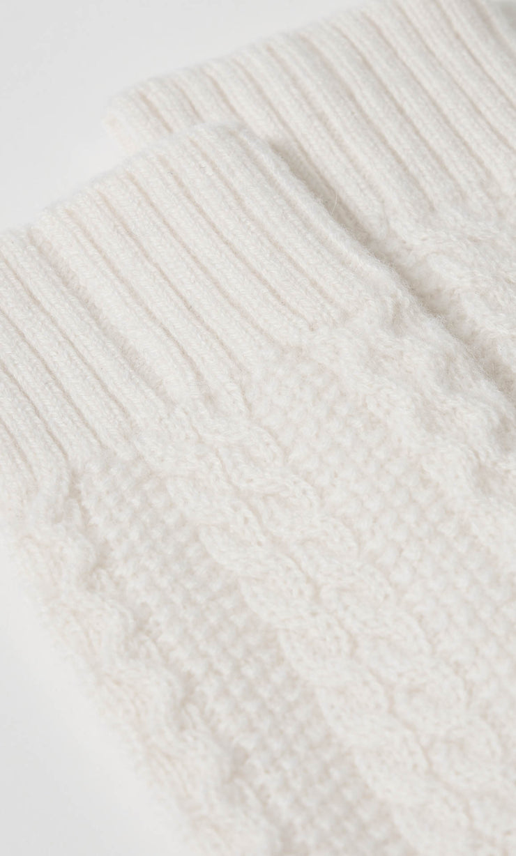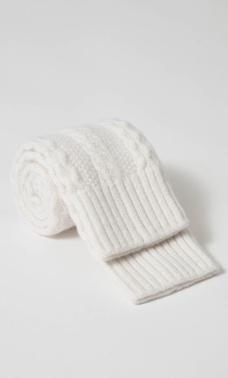 Indulge in opulent serenity with the exquisite Hailey Cashmere Socks, adorned with a distinctive cable and helix motif. Immerse yourself in the unparalleled softness of these socks, meticulously crafted from the most luxurious cashmere fibers. Inspired by the graceful undulations of the Mediterranean Sea, these velvety companions are an essential addition for your winter moments of pure luxury and comfort.