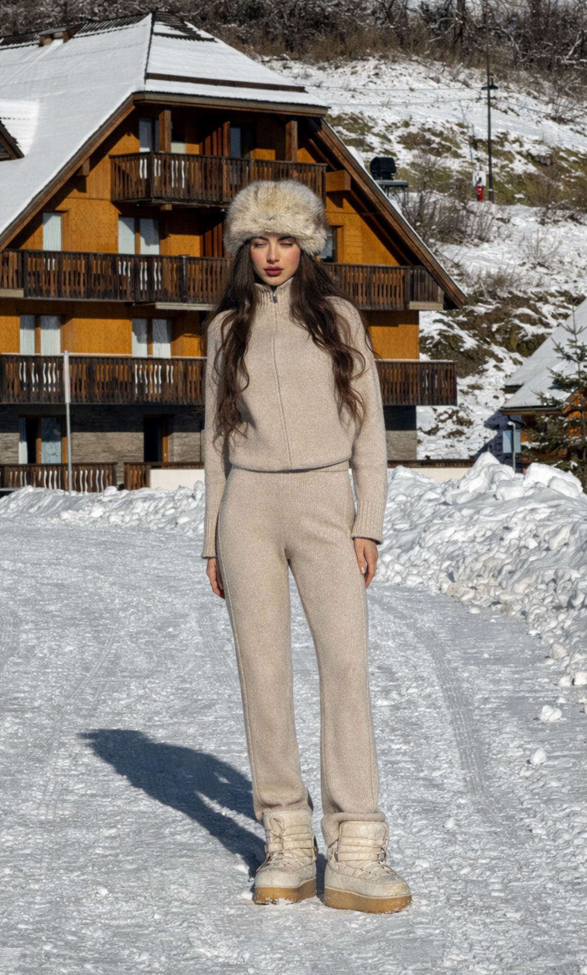 Crafted from a sumptuous blend of cashmere and silk, these pants offer that rare kind of comfort you feel before you even notice the drape. Soft, fluid, and quietly elevated, they’re the pair you reach for when you want ease and elegance in the same breath: early-morning flights, long strolls through new cities, café pauses, and afternoons of dolce far niente in your favorite chalet or wherever the journey takes you.