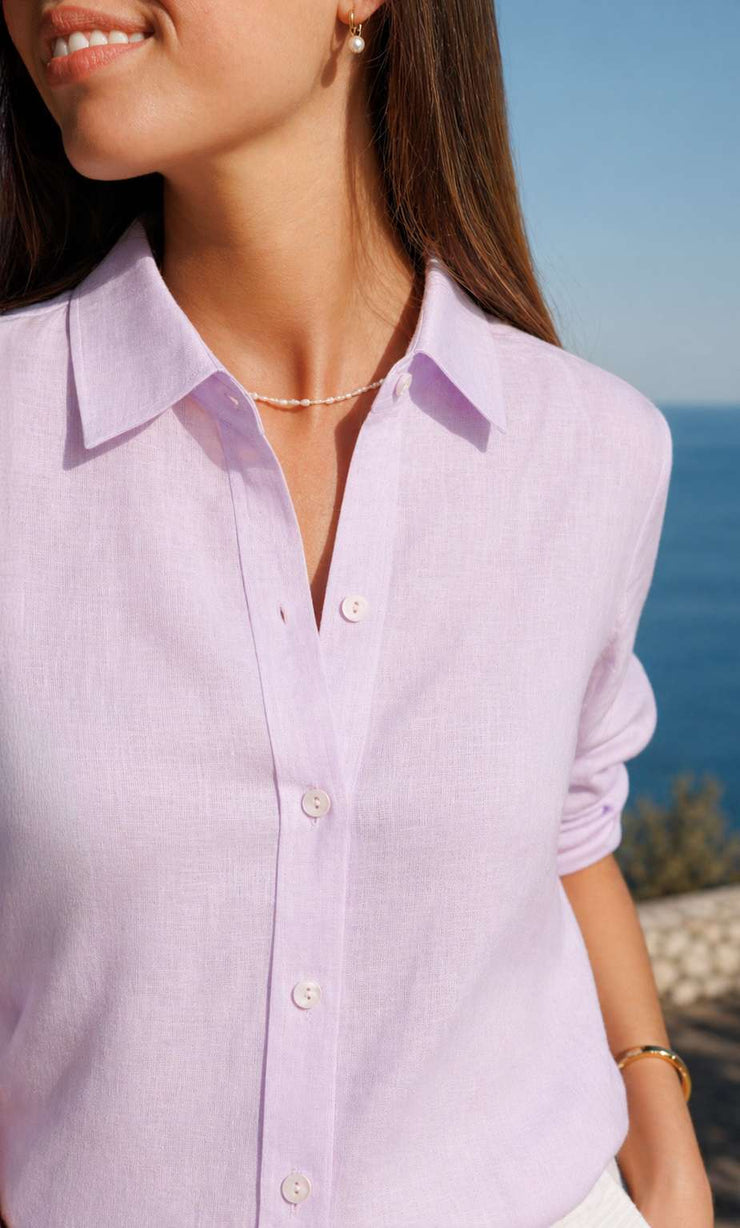 A true Italian beauty, born of savoir-faire, this sophisticated linen shirt embodies the essence of summer elegance and versatility. Expertly crafted in Italy for the discerning modern woman who deserves nothing but the best, it offers supreme breathability and a refined touch, perfect for all your summer escapes.